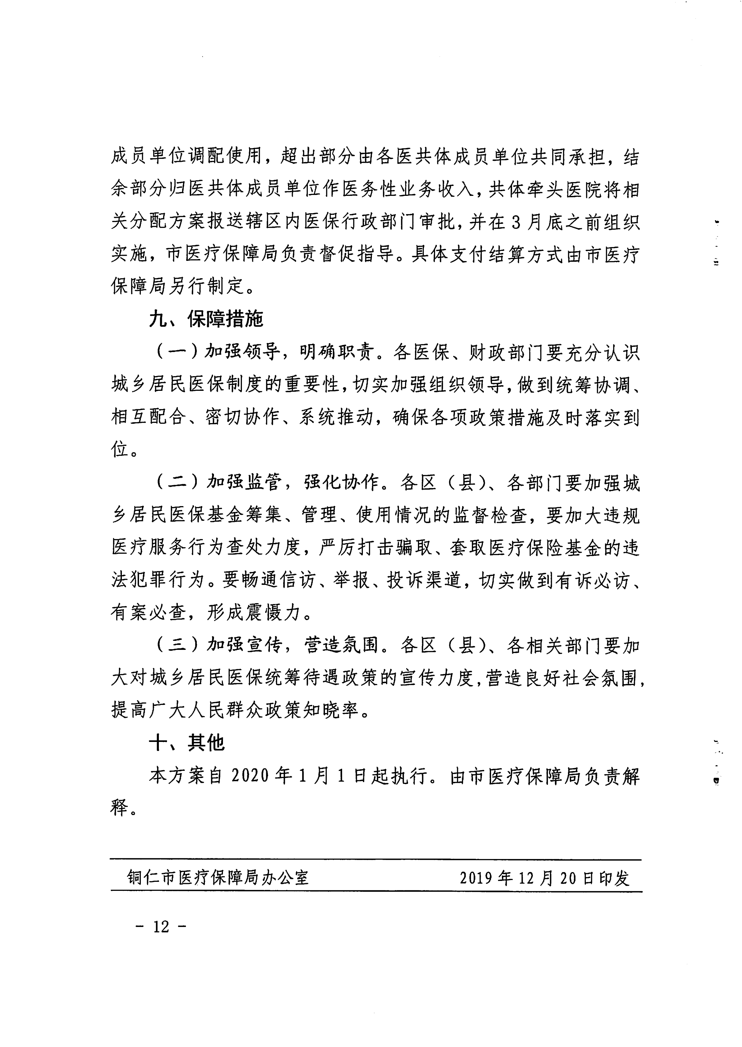 >关于印发《铜仁市2020年城乡居民基本医疗保险待遇支付方案》的通知