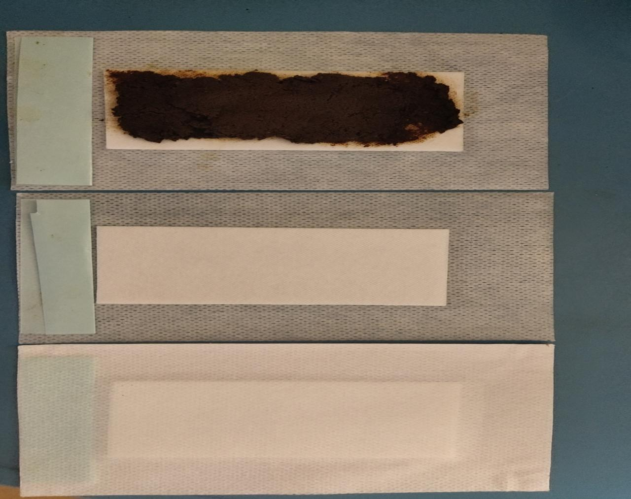 药物由大黄、芒硝组成,取上述药物碾成粉,加蜂蜜调制成稠糊状,取敷料面积大小,放在贴片棉垫中。